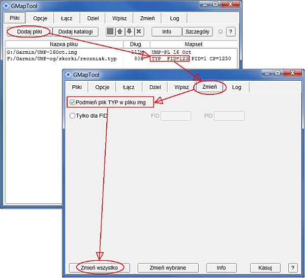 W zakładce "Zmień" wybierz opcję "Podmień plik TYP w pliku img".