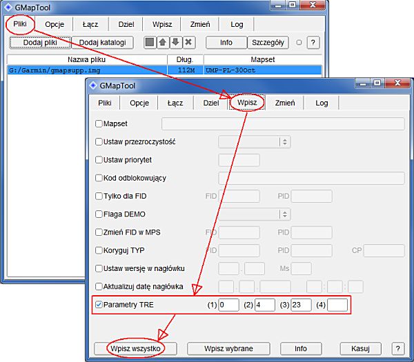Parametry TRE definują typ mapy. Podane wartości 0, 4, 23 oznaczają mapę typu BlueChart.